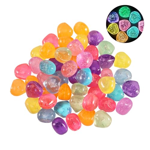Tulov 50 Stück Leuchtende Steine,Kieselsteine leuchten im Dunkeln,Fluoreszierende Harz Steine,Bunte Leuchtende Steine,Leuchtsteine Bunt für Gartengehweg,Aquarium,Pflanzen Topf,Partydekoration Deko