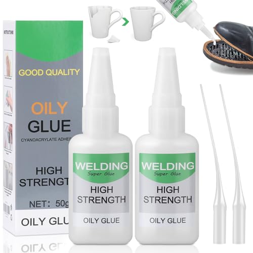 2 Stück Superkleber Extra Stark,50g Mächtiger Universalkleber,Oily Glue,Hochfester Welding Kleber für Schnelle Reparaturen an Kunststoff, Metall,Glas,Holz Usw