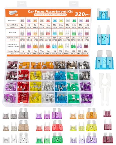 Acual 320Pcs Autosicherungen Set Gemischt, Kfz Sicherungen Set 2A-40A, 168 Mini Flachsicherungen + 98 Standard Sicherungen + 54 Micro Auto Sicherungen mit Zieher für PKW LKW Motorrad Wohnmobil