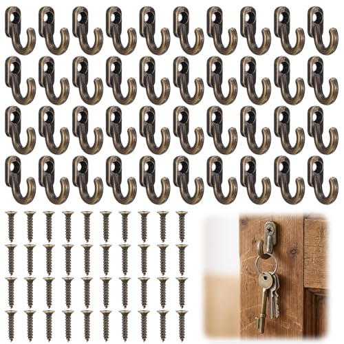 XLIUAX 40 Stück Mini Haken zum Schrauben Bronze, Kleine Garderobenhaken mit 40 Schrauben Antik Schlüsselhaken für Schmuck Handtücher Bad Küche, 16x13mm