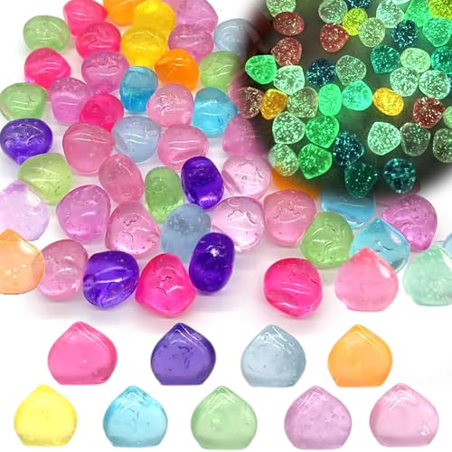 DHER 50 Stück Große Leuchtende Steine, Leuchtet im Dunkeln kieselsteine Bunte Leuchtende Steine Bunte Garten Aquarium Kieselsteine, 2 CM Harz Steine (Wassertropfen leuchtender Stein)