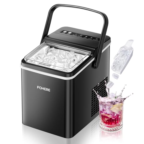 FOHERE Eiswürfelmaschine mit Tragegriff, 14kg/24Std, 9 Bullet Eiswürfel in 5 Minuten, 2 Größen, Selbstreinigend, Tragbare mit Schaufel & Korb – Ideal für Zuhause Küche Büro Camping Party RV