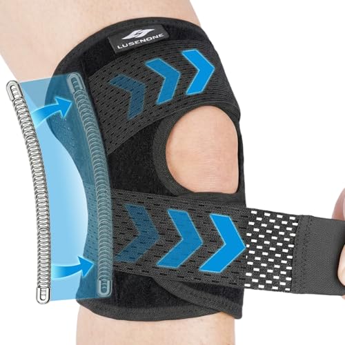 Lusenone Kniebandage für Damen Männer, Verstellbare Kniestütze mit Seitenstabilisatoren & Riemen, Kompressions Bandage Knie for Meniskusriss, Arthrose, ACL, Knieschmerzen, Laufen, Joggen, Sport