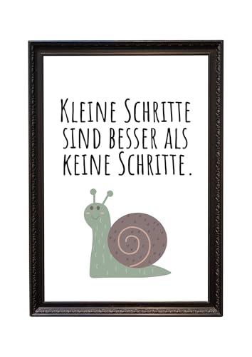 Amizou Din A4 Kunstdruck ohne Rahmen - Spruch - Kleine Schritte - Schnecke Motivation Erfolg Ermutigung Schule Lehrer Zielstrebigkeit Ehrgeiz Druck Poster Bild Wandkunst