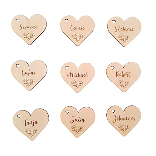 Suzu Papers Platzkarten Herz - Premium Namensschilder Holz - Tischkarte Herz für Deko Hochzeit Tischdeko (1 - Nebeneinander)