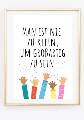 Kunstdruck ohne Rahmen - Spruch: Man ist nie zu klein, um großartig zu sein - Kindergarten Schule Pädagogik Kita Motivation - Bild Poster