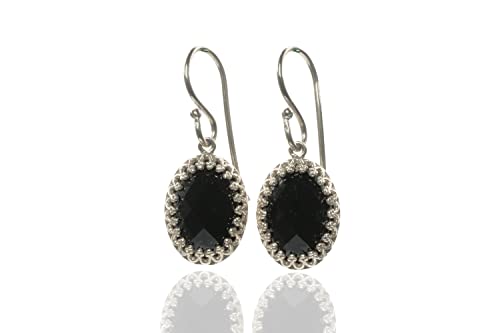 Anemone Jewelry Schwarzer Onyx Sterling Silber Ohrringe - Kunst Deco Komplizierte Haken Ohrringe - Braut Ohrringe, Edelstein Ohrringe, Vintage Ohrringe, Aussage Ohrringe - mit Signatur Kasten