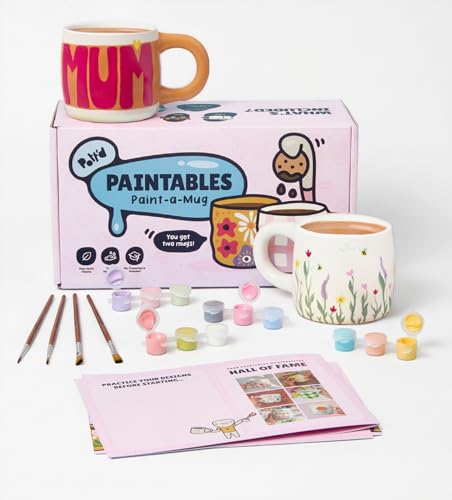 Pott'd Paintables Tassen zum Bemalen Set für Erwachsene, Tassenmalset zum Selbermachen für Anfänger. Keramik Bemalen Set enthält Tassen, Farben, Pinsel, Tuch und Malinspirationshandbuch