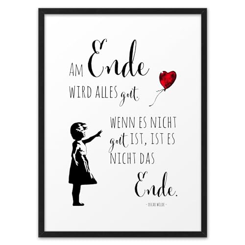 AM ENDE WIRD ALLES GUT | ABOUKI Kunstdruck | Alles Wird Gut Geschenk Streetart Bild Poster Sprüche Bilder Kunstdruck Spruch Bild Motivation Poster Geschenkidee | DIN A4 oder DIN A3