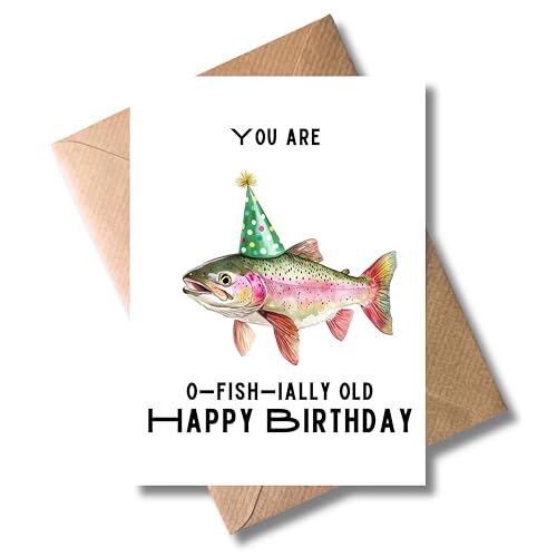Geburtstagskarte für Angler mit Umschlag - "O Fish ally Old" Anglergeburtstag Fisch Geburtstag Partyhut Grußkarte (DIN A6)