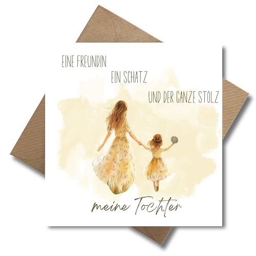Grußkarte mit Umschlag - Tochter Dankeskarte Mutter Wertschätzung Familie Spruch Hand in Hand Geburtstagskarte Geschenk Kind (quadratisch - 125 x 125 mm)
