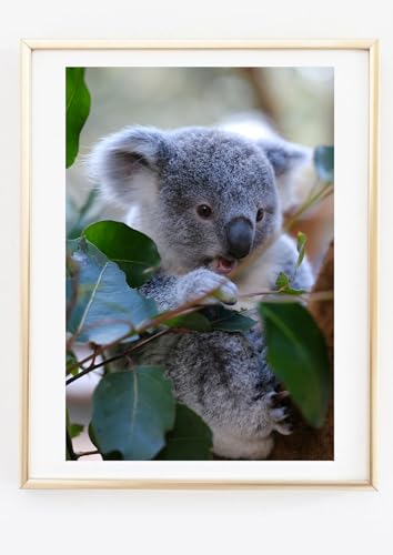 Din A4 Kunstdruck ohne Rahmen - Süßer Koala mit Eukalyptus - Koalabär Australien Foto - Druck Poster Bild