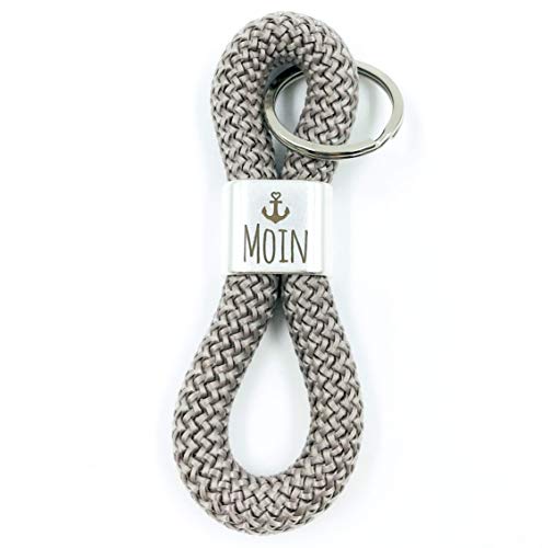 UKo-Art Schlüsselanhänger Segeltau Moin und Anker, Schokograu und weitere Farben Segelseil, verschiedene Gravuren