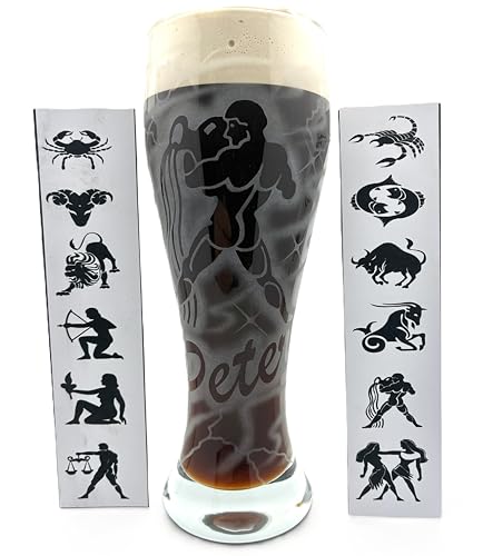 Weizenglas 0,5 l mit Gravur Sternzeichen und Name personalisiert Glas Bierglas Weizenbierglas Weißbierglas individuell Geschenk