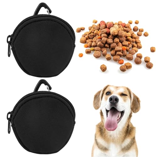 2 Stück Futterbeutel Hundetraining Klein, Tragbare Leckerlitasche für Hunde, Hunde Leckerli Beutel Klein, Schwarz Snackbeutel Hund mit Karabiner Wiederverwendbar für Reisen, Spaziergang Haustiere