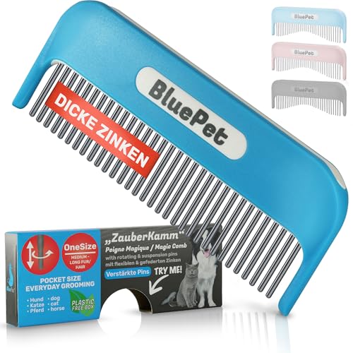 BluePet Verstärkter Zauberkamm patentiert mit rotierenden & nachgebenden Zinken - Für Langhaar Hunde und Katzen - Entfernt Knoten und Entwirrt das Fell - Auch für Menschen