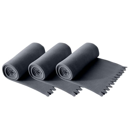 wometo 3er Set Wave Fleecedecken 120x160 cm - Oeko-TEX ca. 300g weiche Fleece Decke mit Wellenrand Anti-Pilling grau