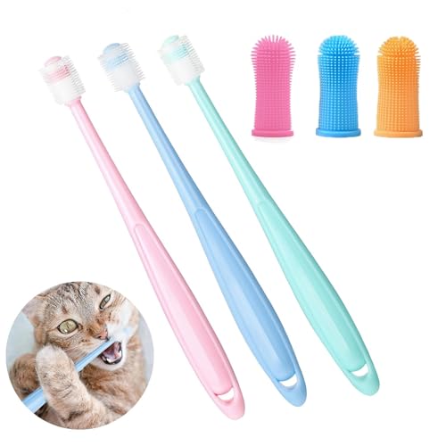6 Stück Katzen Zahnbürste, 360 Grad Hundezahnbürste für Kleine Hunde Mittelgroße und Große Haustiere, Silikon Lebensmittelqualität Wiederverwendbar Zahnbürste Katze und Hunde