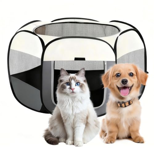 Tragbarer Welpenauslauf, 110x110x60cm Welpenlaufstall Hundebox Faltbar Katzengehege Wohnung, Wasserdichtes Oxford Tuch Laufstall Hund,Katzenkäfig Hundekäfig für Katzen, Hunde, Kaninchen (Grau)