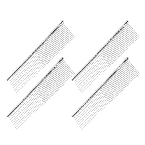 MUELODSIC 4 Stück 4 Stück Entwirrungskamm für Katzen und Hunde Edelstahl Fellpflegekamm für lang und Kurzhaarige Haustiere Handlicher Tierkamm zur Knotenentfernung und Fellwechselpflege