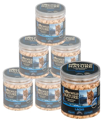 Dehner Wild Nature Katzensnack, Premium Leckerli glutenfrei / zuckerfrei, für ernährungssensible Katzen, gefriergetrocknet, Lachs, 6 x 20 g (120 g)