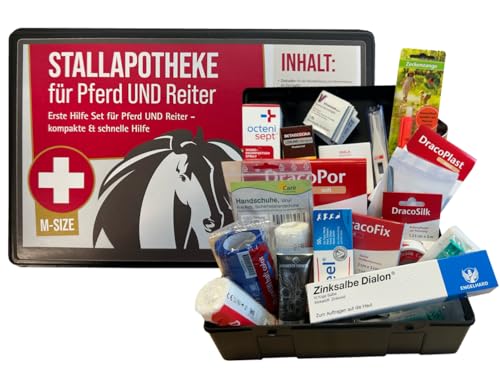 Stallapotheke für Pferd und Reiter - M-Size Stall Apotheke von Apotheken-Express 18 teiliges Set -erste Hilfe für Pferd und Reiter