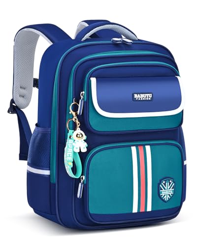 Amythe Schulranzen Jungen 2-5. Klasse - Ergonomischer Kinder Rucksack für Grundschule - Wasserdicht Schultasche Mit Anhänger - Schulrucksack für Junge 8-12 Jahre -Grün