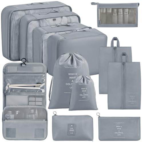 Chijoo 12 teiliges Koffer Organizer Set (Grau) – Packing Cubes Set, Packwürfel, Reise Gadget
