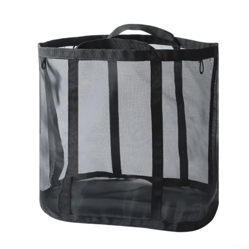 KHIronHive Faltbarer Wäschekorb mit Griffen, atmungsaktiv, zusammenklappbarer Netz-Wäschesack für Kleidung, Reisen, Strandtasche und Heimorganisation, platzsparendes Design (schwarz)