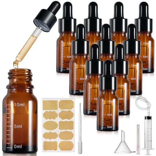 Realure 10 Stück Pipettenflasche 10ml mit Skala, Kleine Braunglas Glas Tropfflasche Dropper Bottle, Refillable Flasche mit Pipette, für Ätherische Öl Parfümöle Flüssigkeit 5 Hilfszubehör