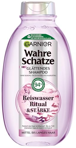 Garnier Wahre Schätze Glättendes Shampoo Reiswasser Ritual & Stärke, für mittellanges bis langes Haar, aufpolsternde Pflege, für mehr Glanz und Geschmeidigkeit, ohne Silikone, 1x 250ml
