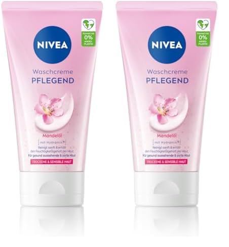 NIVEA Pflegende Waschcreme mit Mandelöl, sanfte Gesichtsreinigung für trockene und sensible Haut, extra milder Cleanser fürs Gesicht, pflegende Reinigungscreme (150 ml) (Packung mit 2)