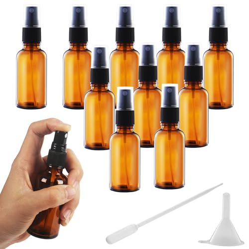 Nuangoo 10 Stück Braunglas Sprühflasche, 50 ml Sprühflasche Klein Glas mit Trichter und Tropfer, geeignet für ätherische Öle, Kosmetika, Parfüm, Aromatherapie, Massage, Haare