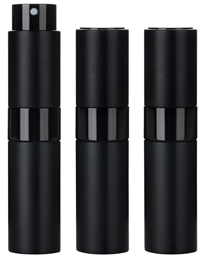 FitDA 8ml Parfümzerstäuber Nachfüllbar,Leer Reise Parfüm Zerstäuber, 3pcs Parfüm Abfüller,Mini Portable Sprühflasche, Parfüm Behälter, Taschenzerstäuber für Unterwegs,Damen und Herren(Schwarz)