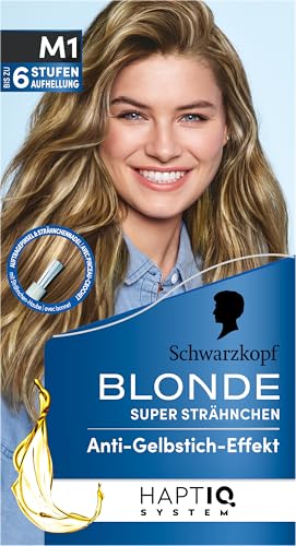 Schwarzkopf Blonde M1 Super Strähnchen (103 ml), Strähnchen Set für Öl-aktiviertes Haare Aufhellen mit HaptIQ System, bis zu 6 Stufen aufhellen für sonnengeküsste Strähnchen