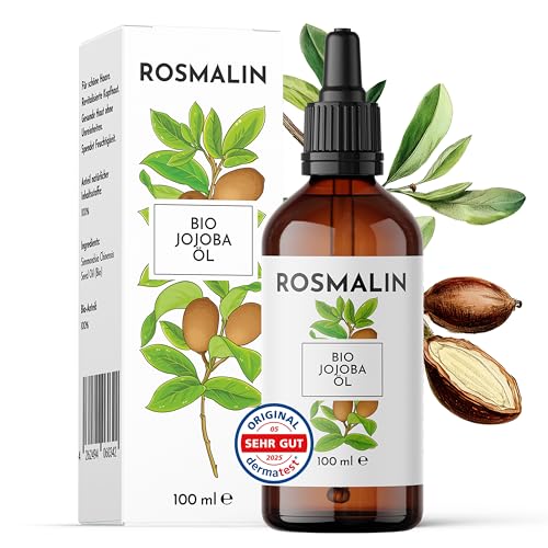 Rosmalin® Jojobaöl Bio kaltgepresst - Jojoba Oil - Für Haare, Kopfhaut, Körper & Gesicht - Geeignet für Kosmetik - Pflegende Kopfhautbehandlung, 100 ml