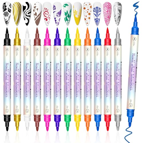 12 Farben Nagelkunst Stifte Set, 2026 Neue Nail art markers für Gelnägel, DIY Nagelkunst-Marker zum Zeichnen und Malen, Liner-Stift, Nagelkunst-Werkzeuge für Graffiti, Punktieren
