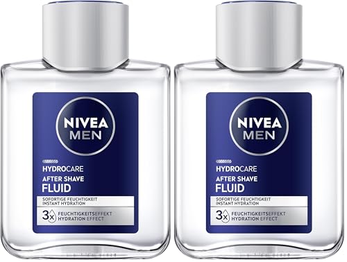NIVEA MEN Hydrocare After Shave Fluid, beruhigendes After Shave für Männer, Hautpflege nach der Rasur mit Aloe Vera und Pro Vitamin B5 (100 ml) (Packung mit 2)