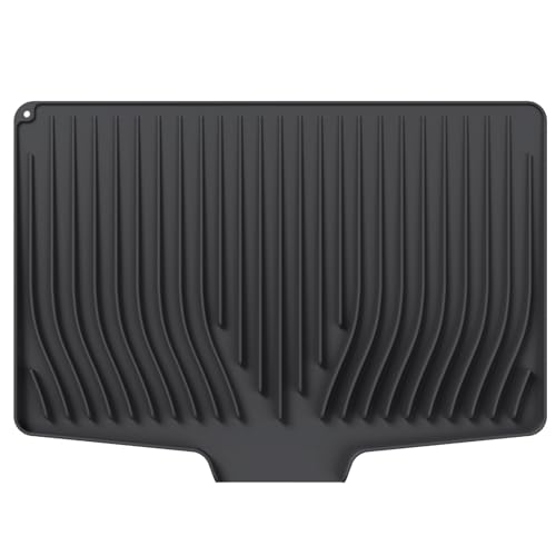 Silikon Abtropfmatte Küche 48cm x 34cm Geschirrabtropfmatte Spüle Rutschfeste 450°F Hitzebeständige mit Abflussrillen Abtropffläche Spülmatte Trockenmatte für Geschirr Besteck Abtropfschale Schwarz