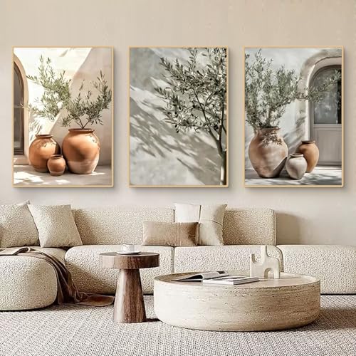 TROYSINC 3er Vintage Olivenbaum Bilder Set, Aesthetic Olivenbaum Poster Vintage Topfpflanze Bild Wandbild Italien Griechenland Wanddeko Wohnzimmer, ohne Rahmen (40x50cm,B)