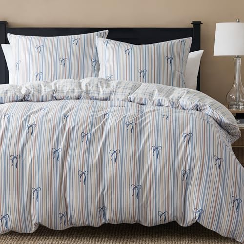 R.SHARE Bettwäsche Set 3teilig, 1 Bettbezug 200 x 200 mit 2 Kissenbezüge 80x80 cm, Kuschel Bettwäsche Schleifen Muster mit Reißverschluss ÖKO-TEX Bedding, Streifen Bogen