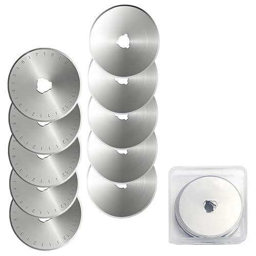 10 Stück Ersatzklingen für Rollschneider 45mm, SKS-7 Stahl Rollschneider Ersatzklingen mit Box für Rollschneider Rollmesser Stoffschneider Passend