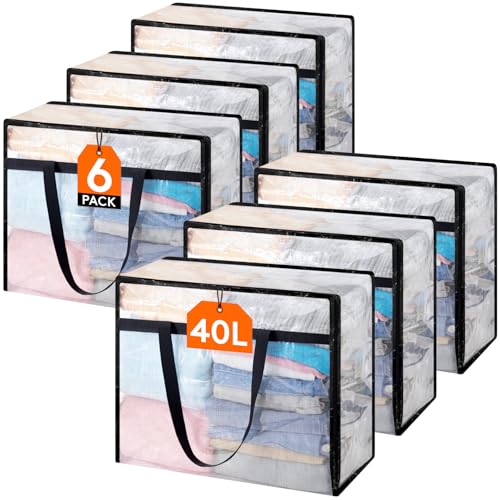 Lifewit 6er-Pack Klare Kleideraufbewahrungstaschen, 40L Bettdecken-Aufbewahrungsbeutel mit Reißverschluss, Plastik-Umzugstaschen für Bettdecken, Decken, Bettwäsche, Steppdecken, Spielzeug, Handtücher