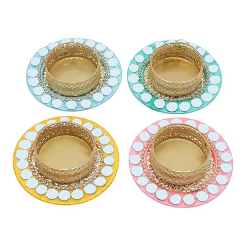 Set of 4 T Light Holder Candle Stand Tealight Holder for Indian Traditional Decorations Lighting Accessories Wedding Home Decor(Size:-3")(Without Wax)(Pink,Yellow,Green,Blue)