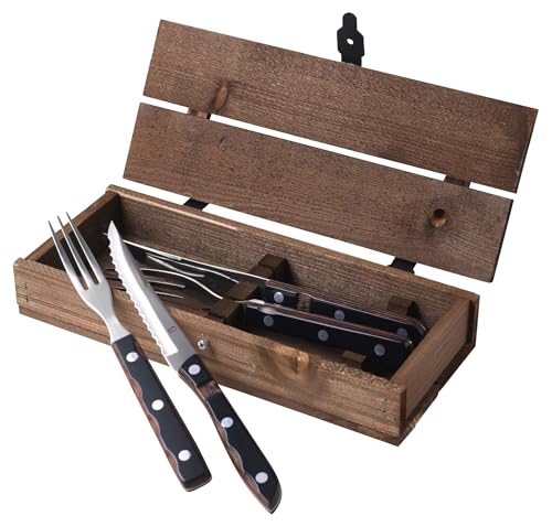Gense Old Farmer Classic, Grillbesteck Set, Steakbesteck Set 2 Personen, Grill/Steak Besteck 4-Teilig, 2 x Gabel und 2 x Steakmesser, Skandinavisches Design, Holz/Edelstahl