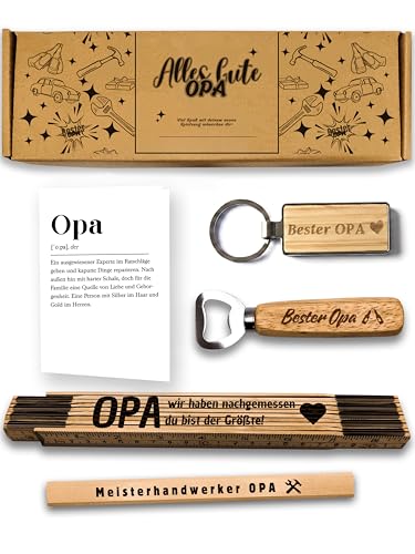 Presentix® Opa Geschenkset (Flaschenöffner, Zollstock, Bleistift & Schlüsselanhänger) Geschenke für Großväter, Geburtstagsgeschenk für Männer, Opa Geschenk