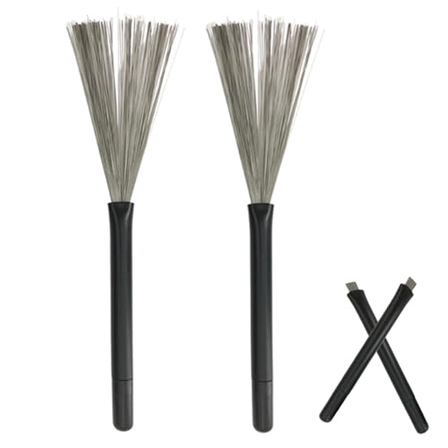 2 pcs Trommelstöcke Pinsel,Trommelbürsten,Schlagzeug Jazz-Besen,Professionelle Jazz Bürste,Drum Stick Brush,Drum Brushes Einziehbare,Schlagzeug Sticks Besen für Musiker Anfänger