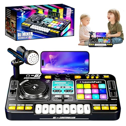 DJ Pult Kinder, DJ Controller Mischpult mit Mikrofon, Dj Pult Anfänger, Dj Mischpult Kinder, 100+ Soundeffekten, Licht, Geschenk Spielzeug für Jungen Mädchen 3-10 Jahre, für Streaming, Gesang