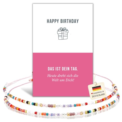 happymaker - Geburtstagsgeschenk für Frauen und Mädchen, handgefertigte Glasperlenarmbänder mit Happy Birthday Karte und Geschenkverpackung