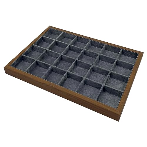 mixed24 Holz Schmucklade Wildlederimitat mit 24 Fächern für Ringe Ohrringe Broschen Schmuck Aufbewahrung Präsentation Display